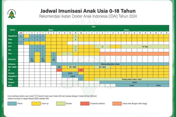 Ikatan Dokter Anak Indonesia (IDAI) baru saja merilis rekomendasi terbaru terkait jadwal imunisasi anak. Secara umum, jadwal dan rekomendasi usia…